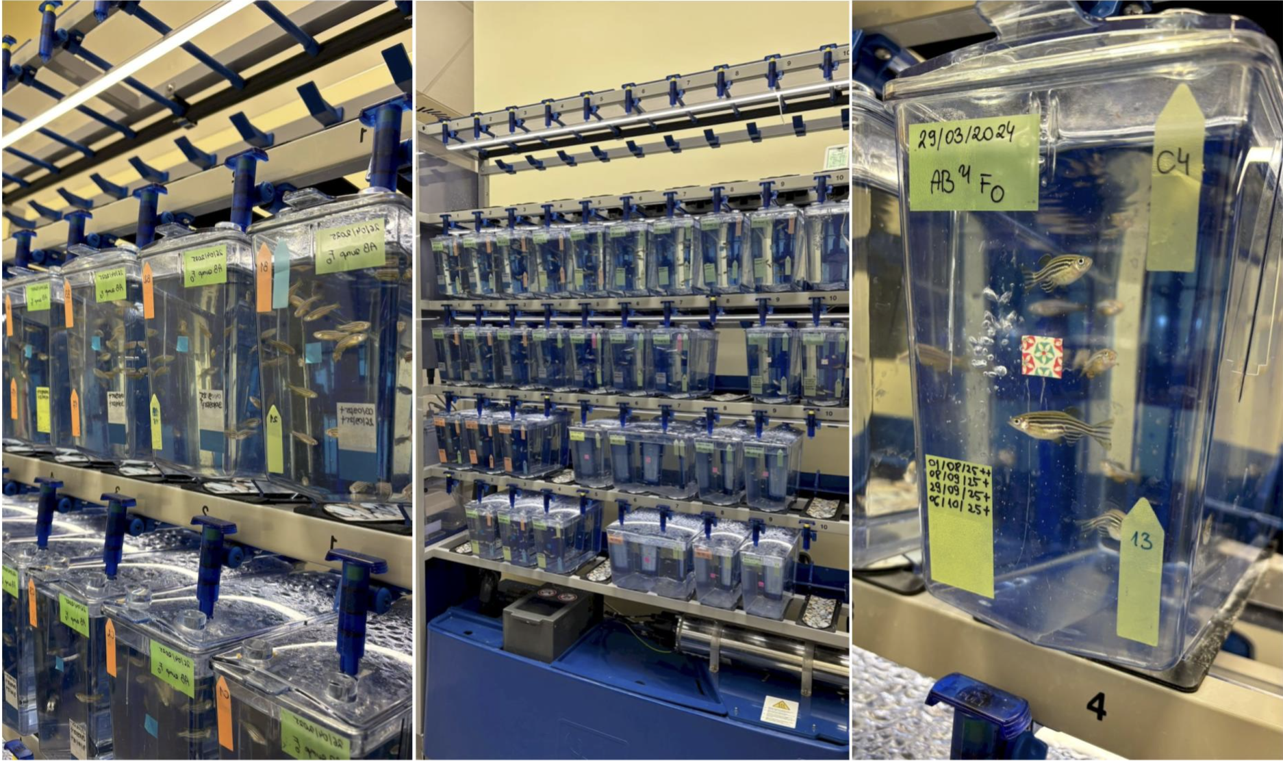Dorosłe osobniki ryb Danio rerio utrzymywane są w specjalistycznych zbiornikach hodowlanych, zintegrowanych z systemem zapewniającym stabilne warunki środowiskowe o parametrach optymalnych dla ich rozwoju. Pozyskiwana od ryb ikra stanowi materiał biologiczny wykorzystywany w dalszych etapach badań eksperymentalnych